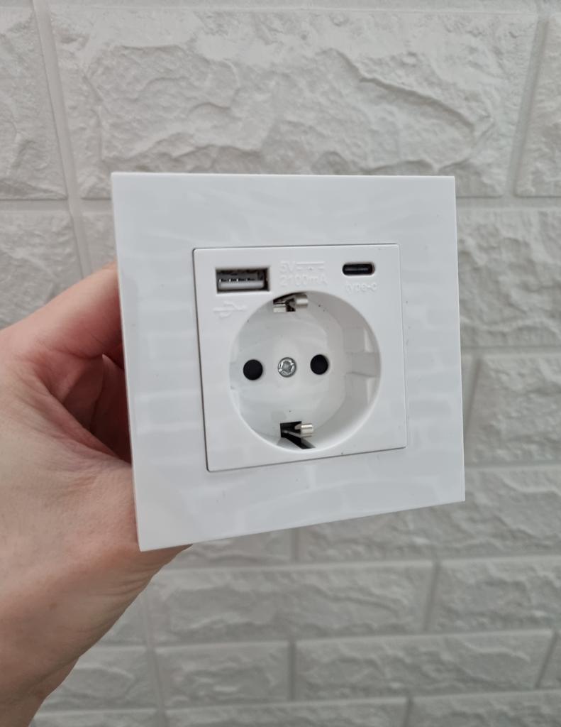 Elektrisk väggladdare Adapter Tyskland Stickkontakt Strömuttag EU Standard 16A Med USB Type-C Laddningsport PC Panel