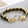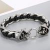 Punk Rock Skull Skeleton Wrist Armband Herr Svart Läder & rostfritt stål Manschettarmband för män Goth Bikers Smycken