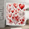 Package 1: European and American style romantic Valentine's Day printed bath mat floor mat bathroom bottom pad toilet pad set of 4 + (bath mat + bottom pad + toilet pad + bathroom shower curtain + accessories 12 C-shaped hooks)