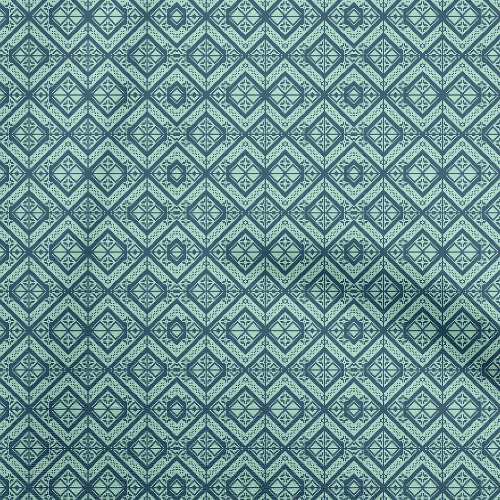 oneOone Cotton Flex Dark Teal Blue Fabric Geometric Diy Clothing Quilting Fabric Print Fabric By Yard 40 Inch