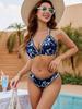 Baddräkt Kvinnors delade tredelade Print Halter Neck Dragsko Bikini Set