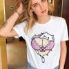 T-shirt med stora bröst, sexig mage för kvinnor Abs-tryck sommar kortärmad Kreativt mönster Roliga kvinnor Modal Harajuku-tröjor T-shirts