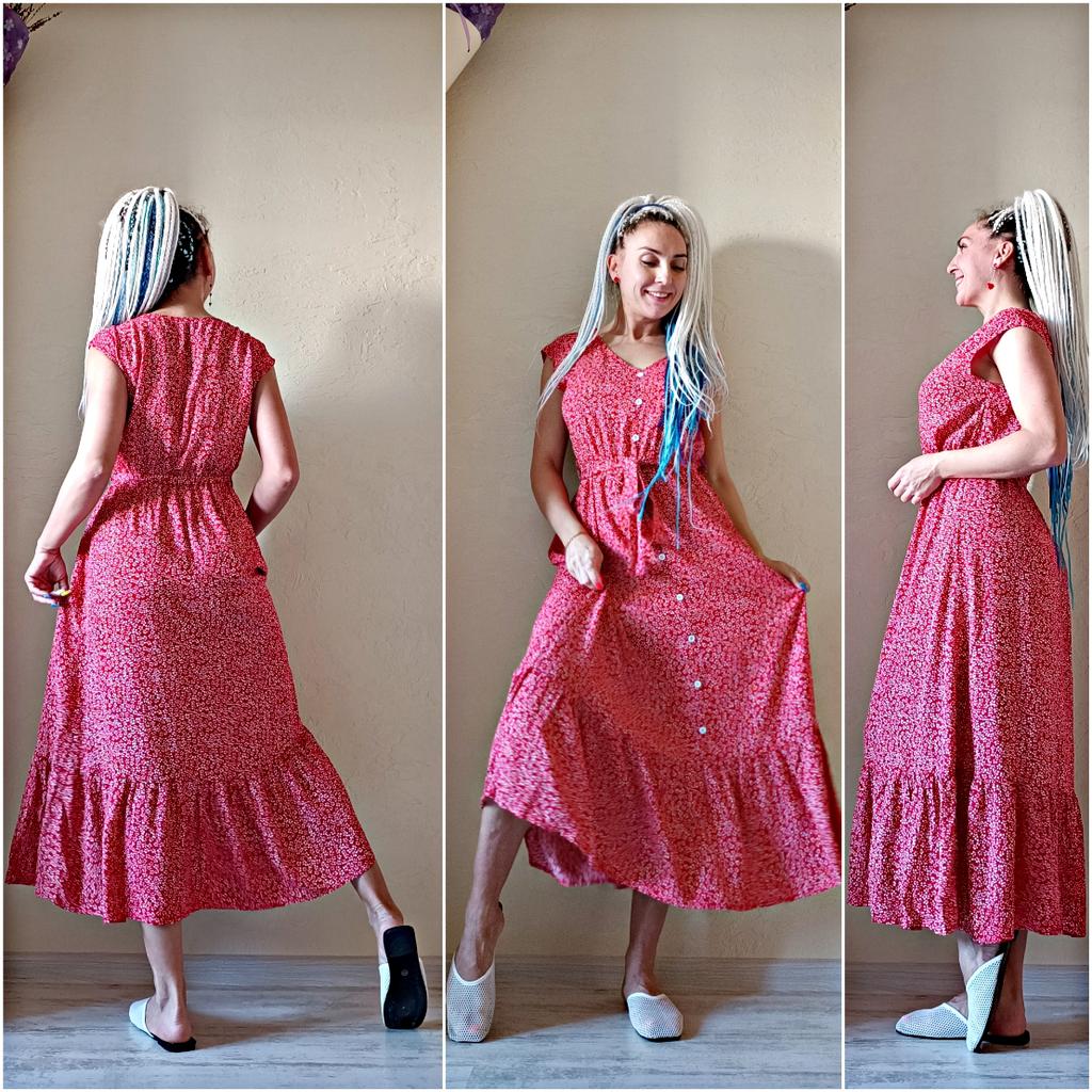 10% discount with code ➡️ JOOMDE03⬅️or ➡️USN19USF3D⬅️for 5% discount. https://at.joom.com/dl/tWbfkXx9ehPpK8Bo6 🌞Delivery time 🌞: 3 weeks to Germany. ♻️Scope of delivery: The scope of delivery includes a long dress 👗. It is available in 3 different colors in a floral print (dark blue, green and red), from small to XXL size. The size corresponds to the size chart. I ordered it in size S in red and the dress 👗 fits me great! I usually wear size 36-38, I weigh 55kg over 167cm. 🌞Quality ♻️: The dress 👗 has a V-neckline, which I really like. It's opaque and very light. It feels like a cotton dress on the skin. Short sleeves, soft fabric. The placket is a fake placket and cannot be unbuttoned. 🔆 About the material composition: The dress 👗 consists of 100% viscose. In the pictures you can see how long it is. The dress is about my calf. I really liked this dress 👗. It will be great for the summer!😉🌞 I would be happy to recommend the product.,5 stars 🌟! Thank you Joom and the seller!🌞