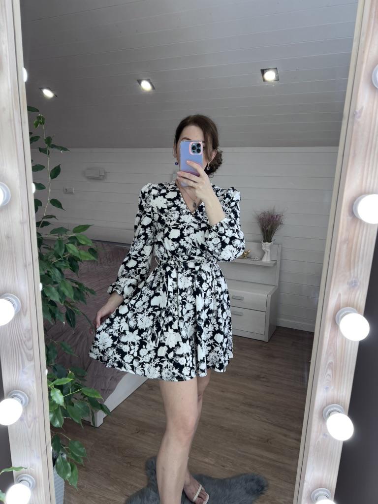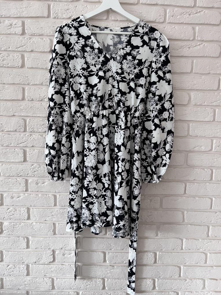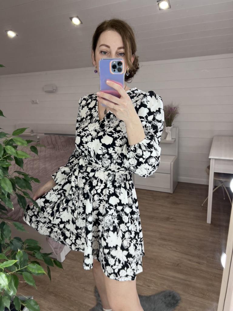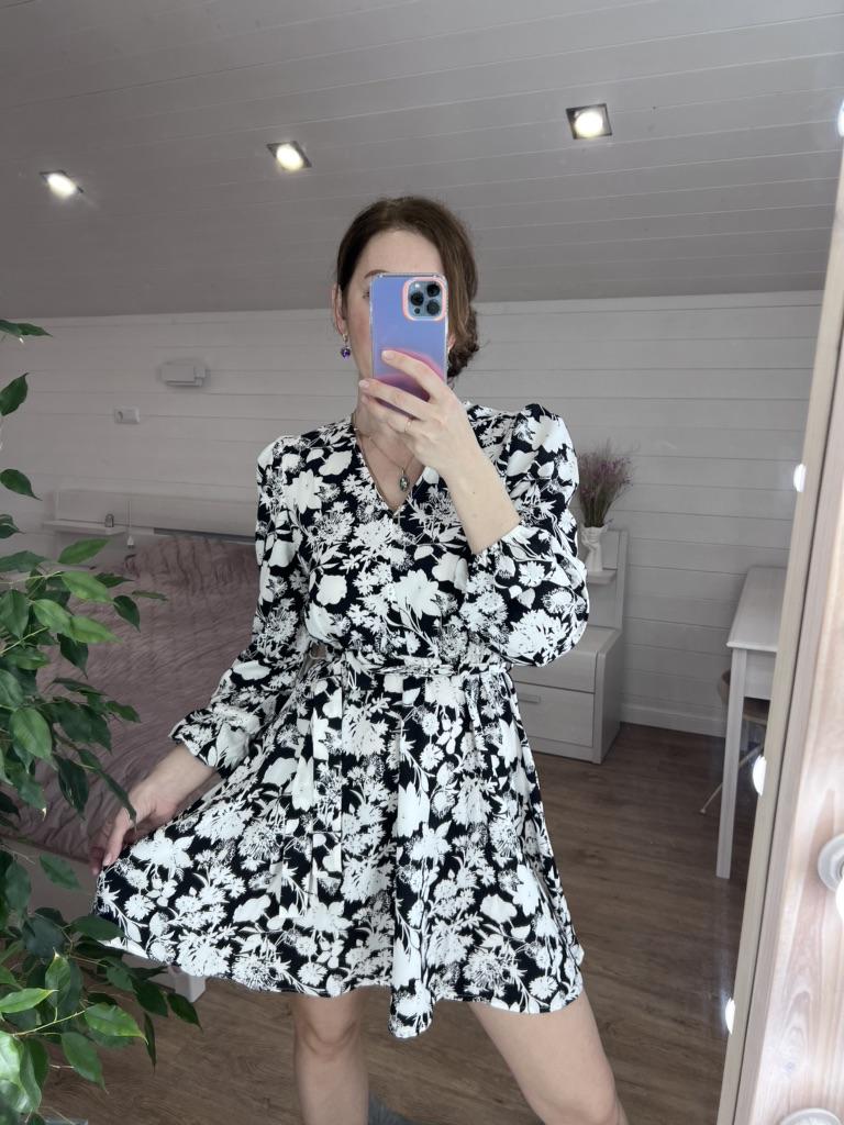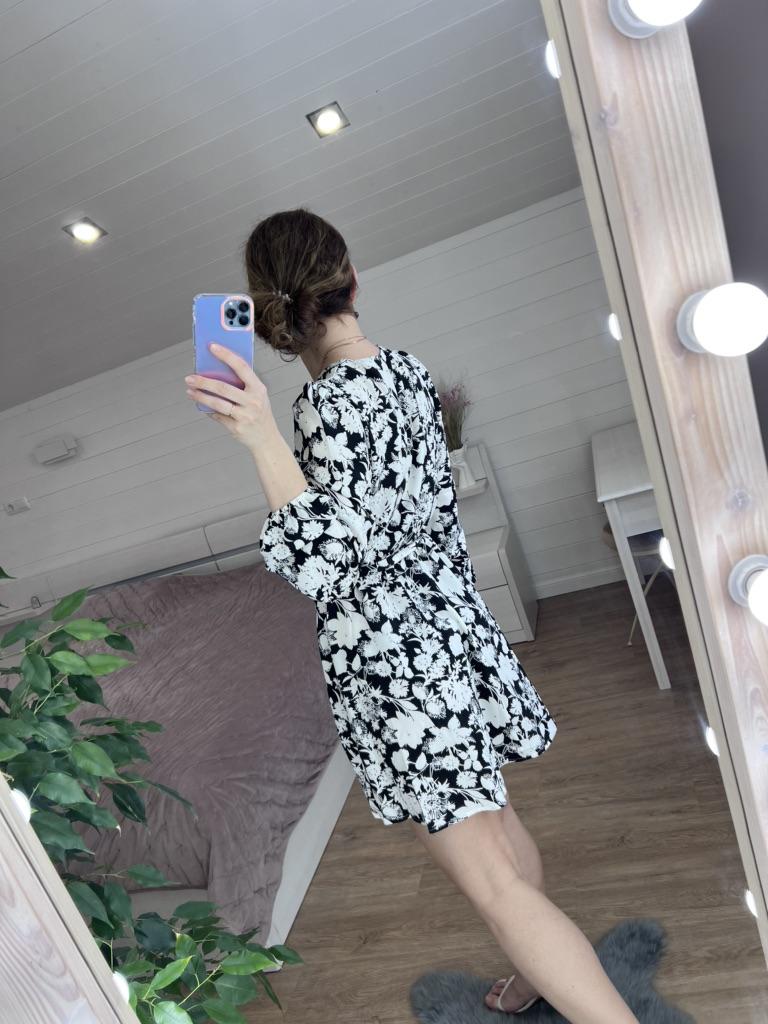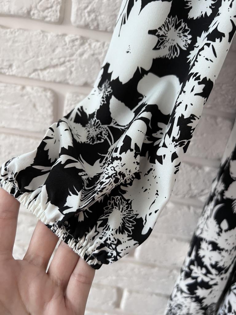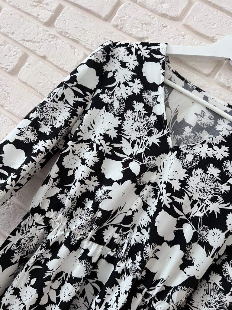 Kvinnors vår höst V-hals långärmad spetstryckt hög midja en linje klänning