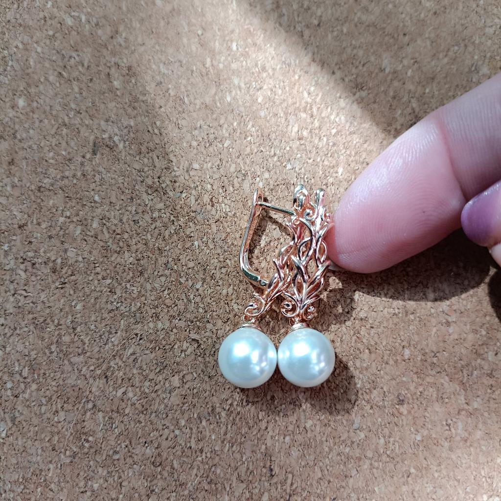 Pearl Long Dingle örhängen för kvinnor Kinel Rose Gold Color Drop örhängen