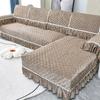 Lyxigt sofföverdrag i gyllene sammet för vardagsrum enfärgat smutsavvisande sofföverdrag elastiskt skyddsdyna 1-3 sitsar soffhandduk