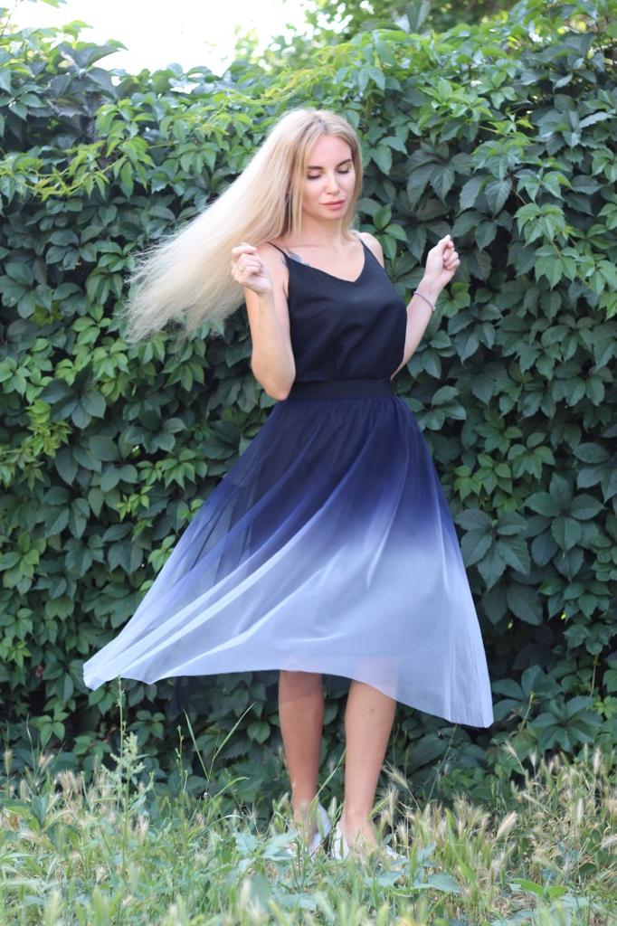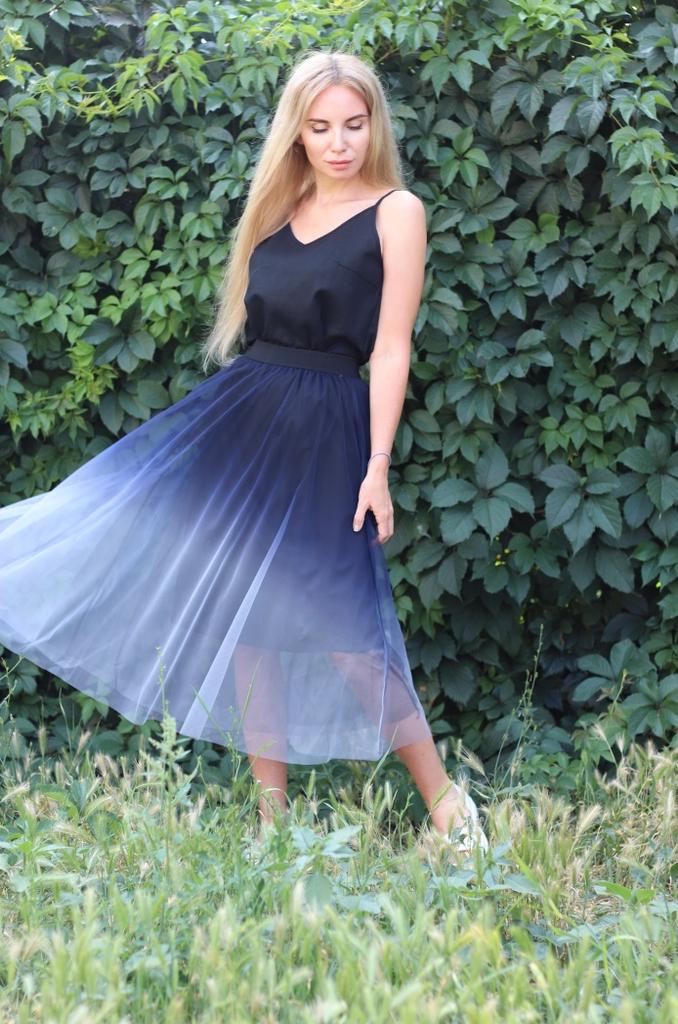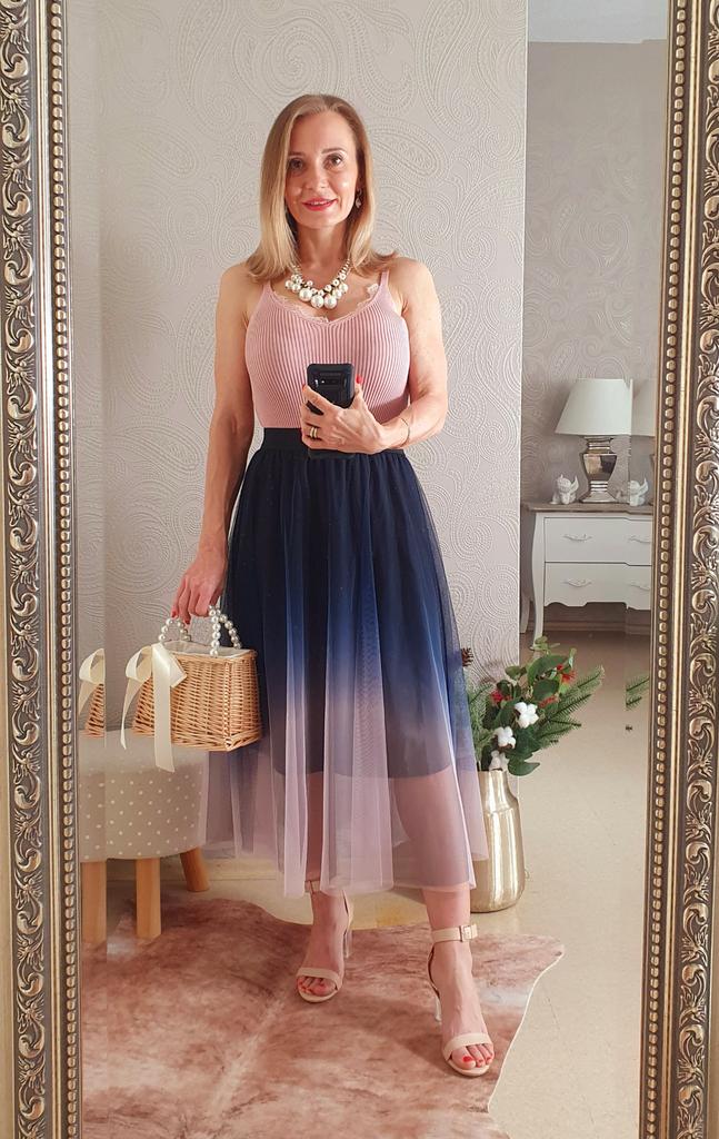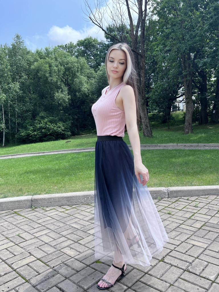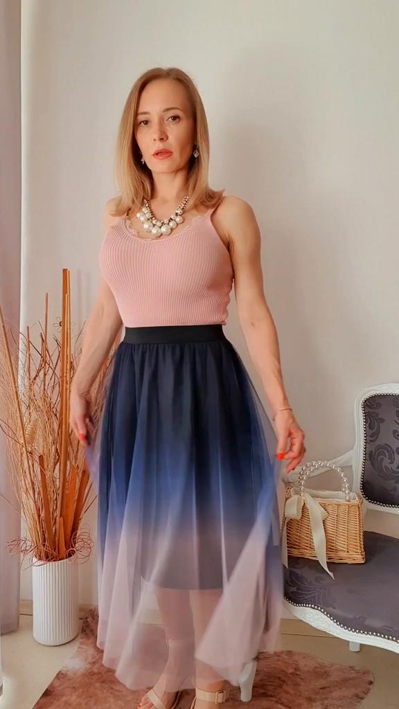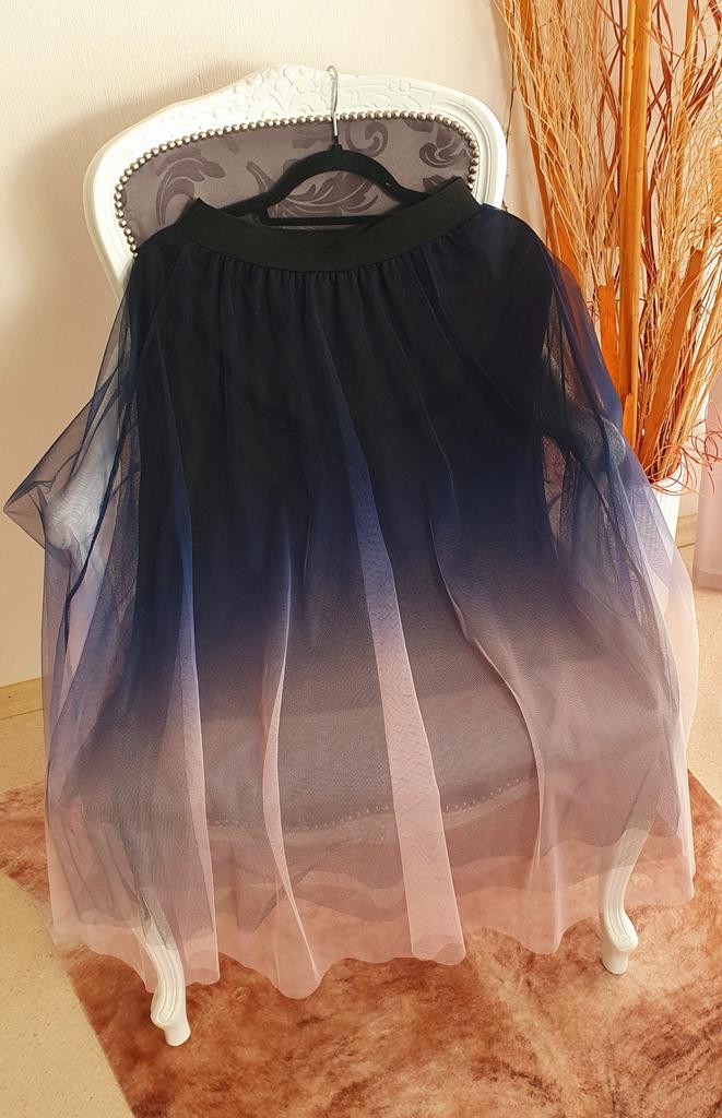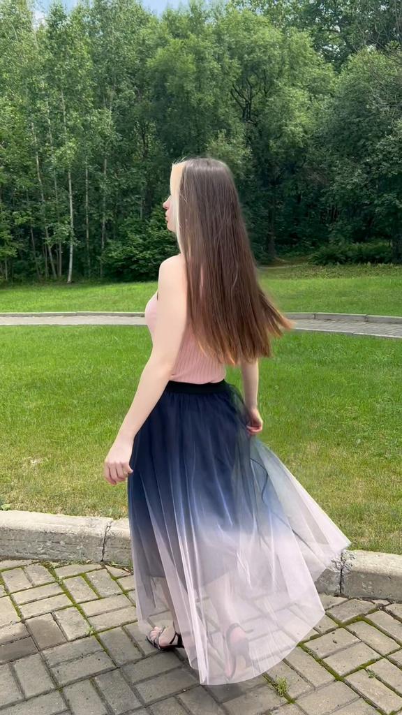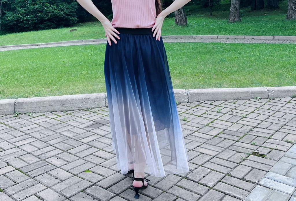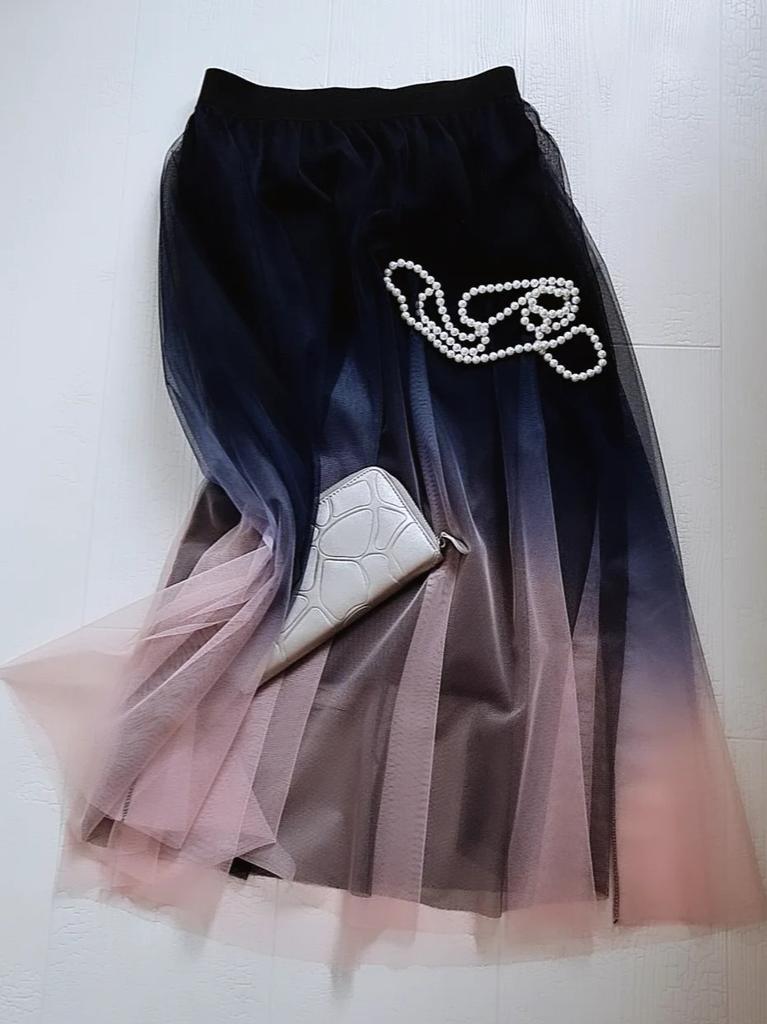 Gradient Color Mesh Midi-kjol Flowy High Waisted A-line kjol för flickor