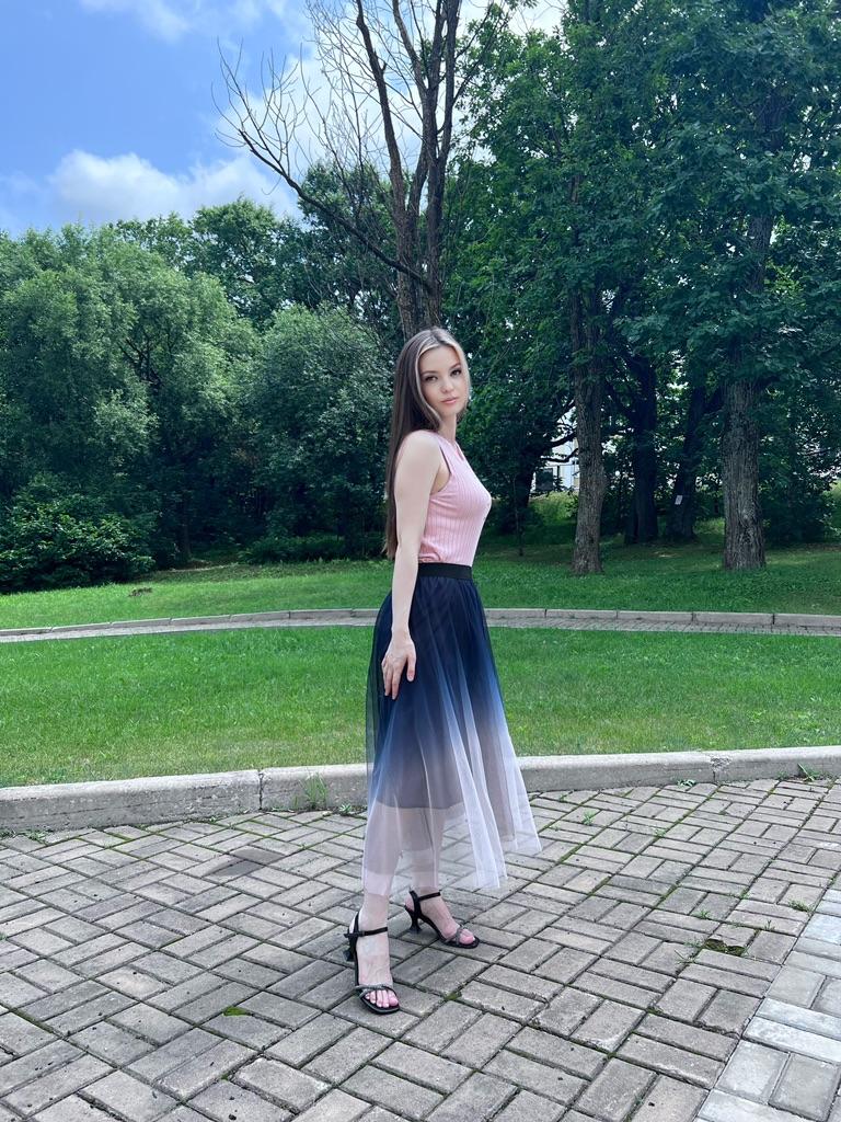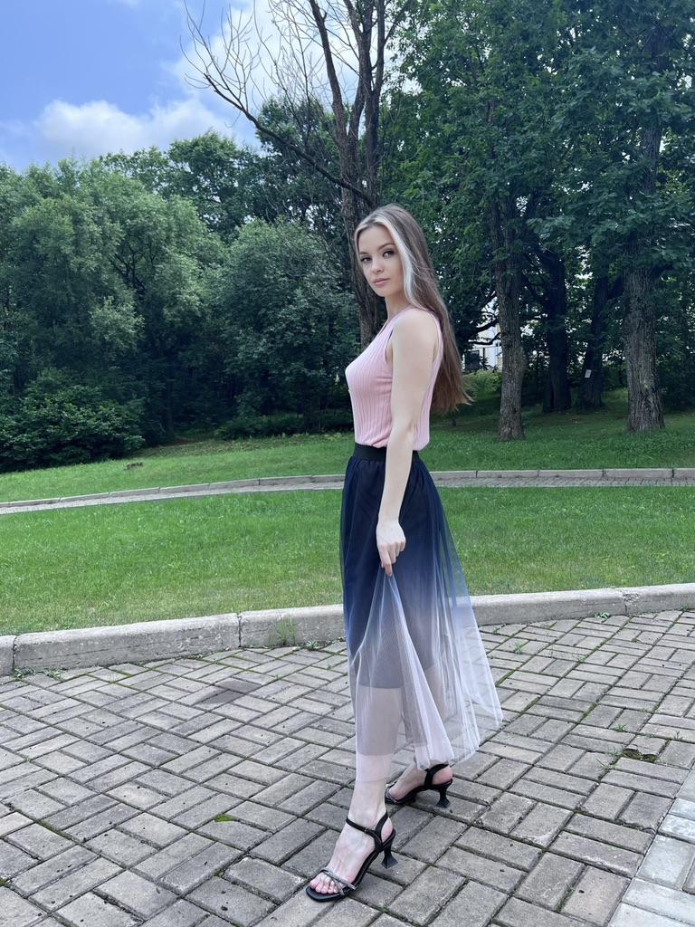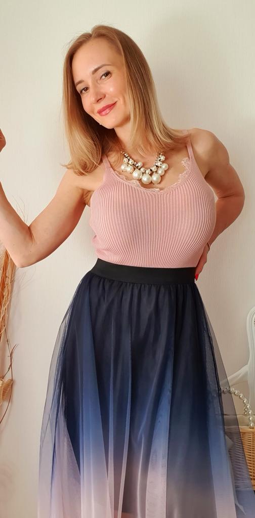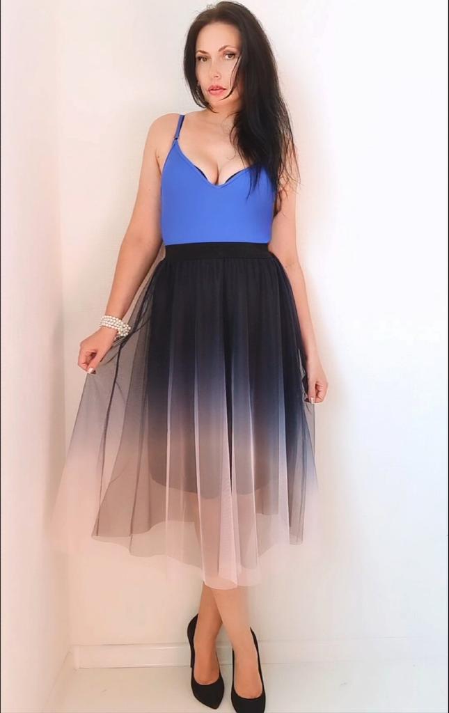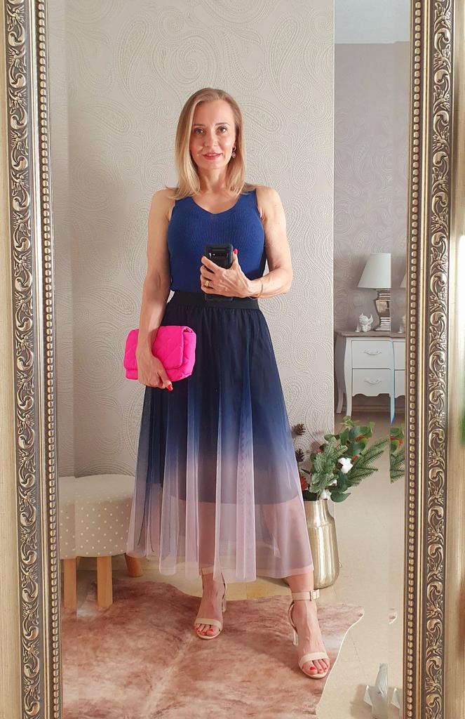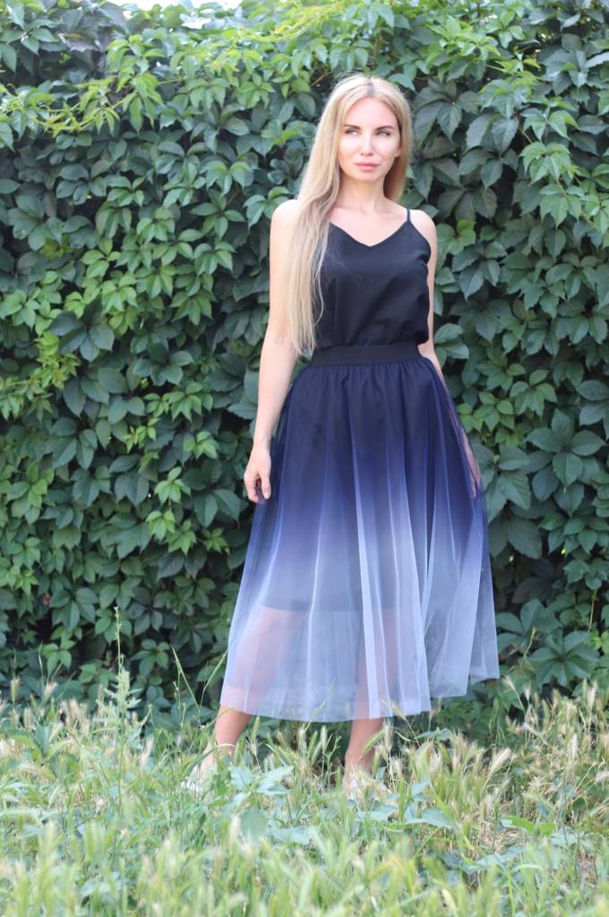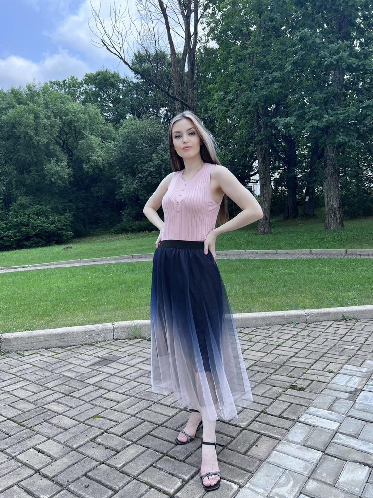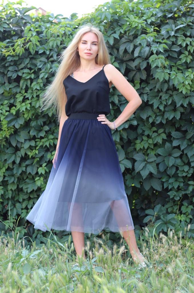 Gradient Color Mesh Midi-kjol Flowy High Waisted A-line kjol för flickor