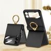 For Samsung Galaxy Z Flip 4 Case Ultra -Thin Plain Leather Magnetic Hinge Finger Ring Holder Bracket Mirror Film Shockproof Cover