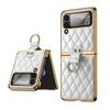 För Samsung Galaxy Z Flip 4 Fodral Romb Pu Läder Elektropläterad Ram Härdat Glas Fullt Skydd Skal