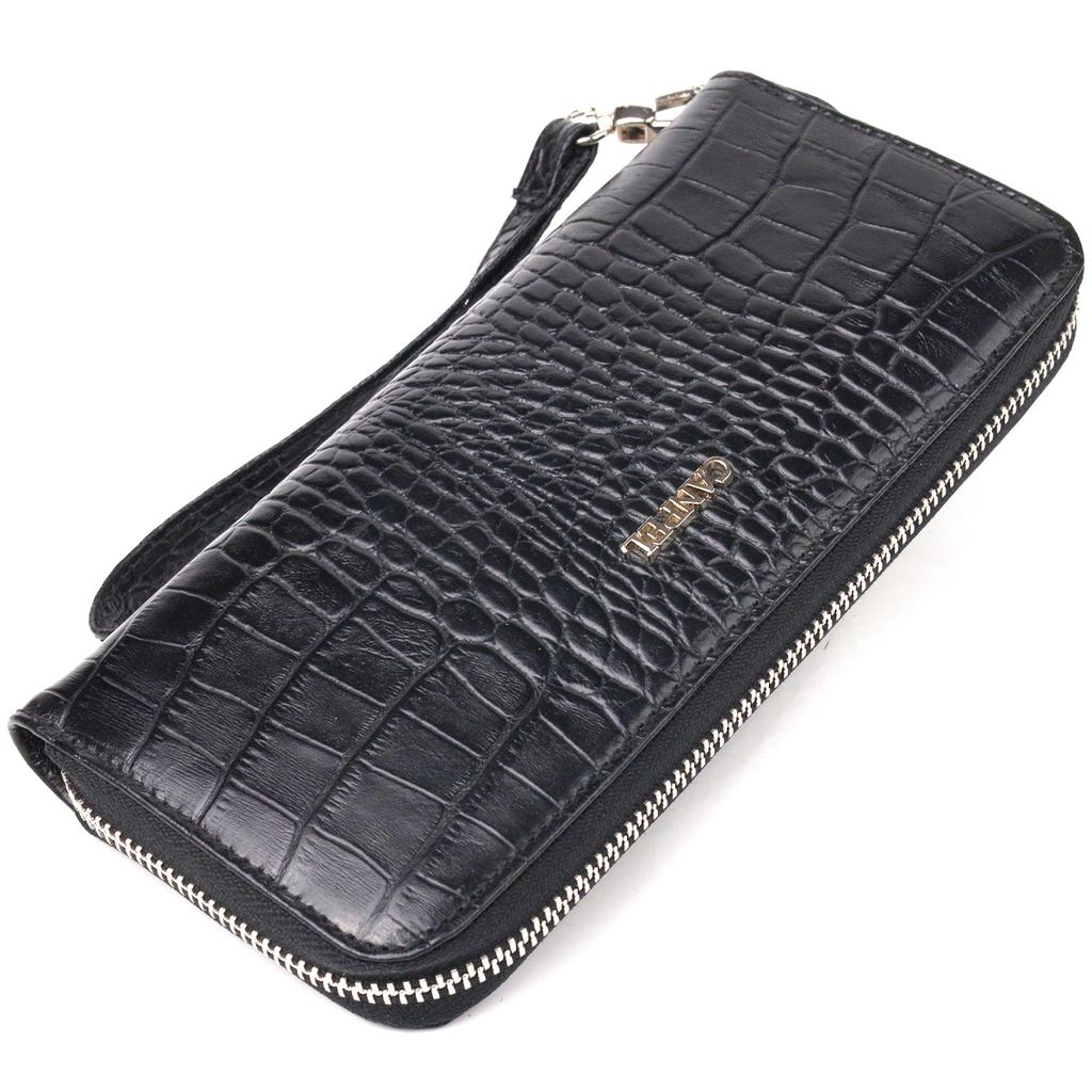 Горизонтальный женский кошелек из натуральной фактурной кожи под крокодила CANPELLINI Wallet 21623 Черный