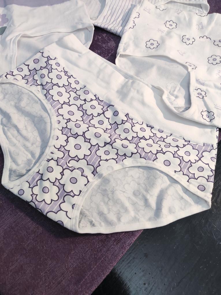 Cotton panty set Various combinations of shapes and colors to choose from High waisted and not very high 4 pieces in a set The quality is excellent, for parameters 73x91 cm I took size XL. The elastic band does not press, it is warm and comfortable👌