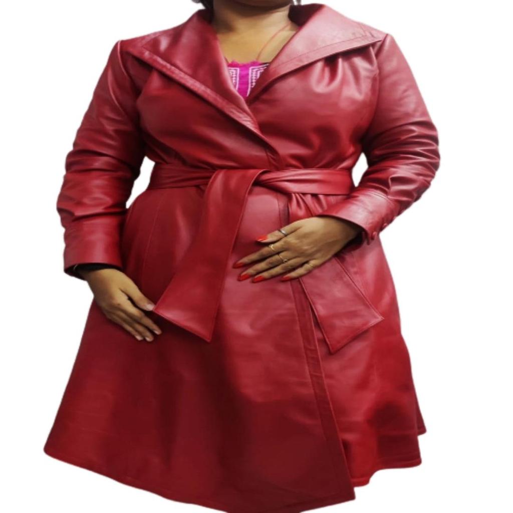 Noora Leather Red Trench coat women , Motar Biker Leather long coat , Lamb Leather Jacket, Handmade Jacket , Vintage Lambskin Leather Coat
