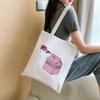 Fashion Women Shopping Bag Peach Milk Strawberry Aesthetic Print Student Book Canvas Bags Reusable Shopper Japanese Kawaii Eco