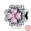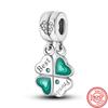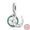 925 Sterling Silver Fyrklöver Stil Grön Klar Zirkon Hjärta Lucky Beads Fit Berlocker Armband Smycken