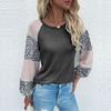 Autumn Women Fashion Leopard Print Patchwork T-shirt Loose Knitted Top