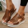 Plisserade PU-lädersandaler för kvinnor Ryggrem Espadrilles Plattformsandlar Kvinna Sommar Tjockbottna Peep Toe Skor