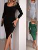 Kvinnor Vår Höst Långärmad V-hals Enfärgad Delad Paket Höftklänning
