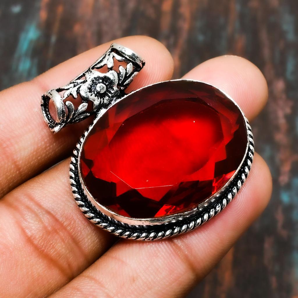 Moçambique granat, ädelsten handgjorda smycken solid 925 sterling silver hänge