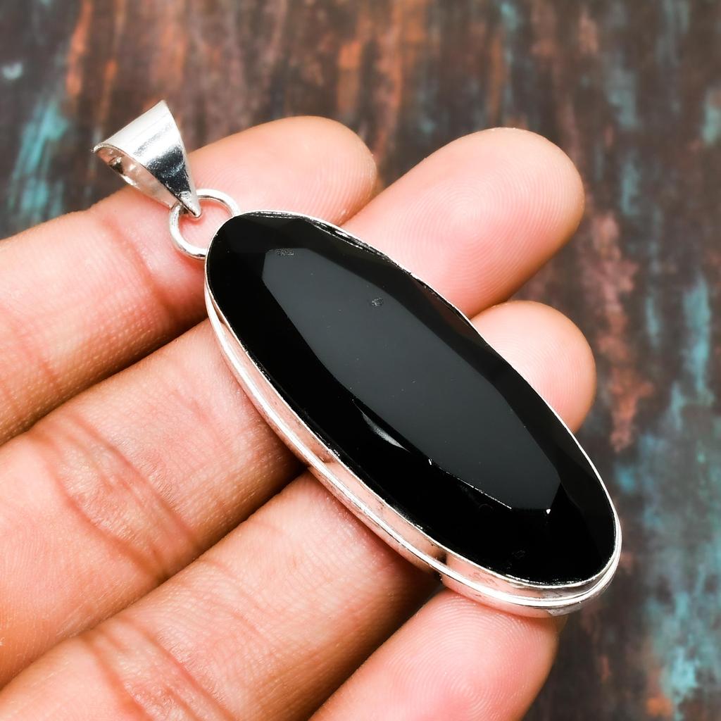 Svart spinell, ädelsten handgjorda solid 925 sterling silver smycken hänge