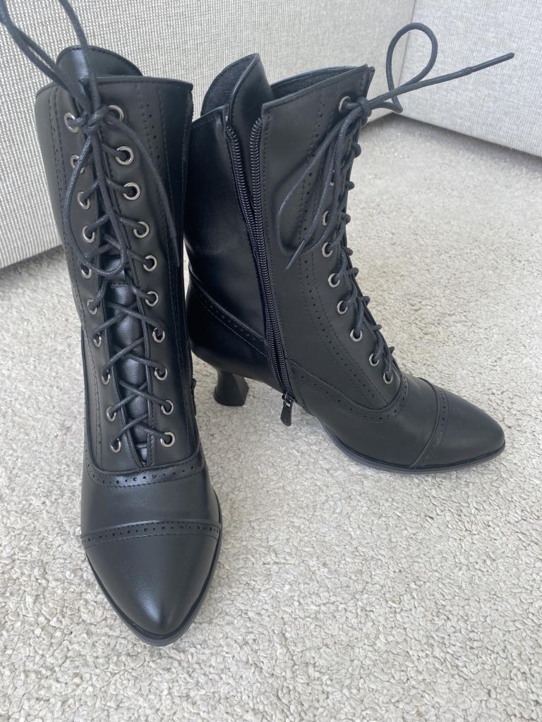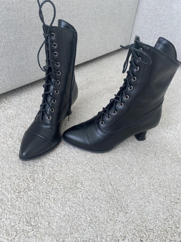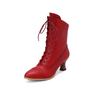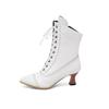 Korta klackskor för kvinnor Enfärgad spetsiga retro snidade korta stövlar Höst och vinter Nya stora kvinnor
