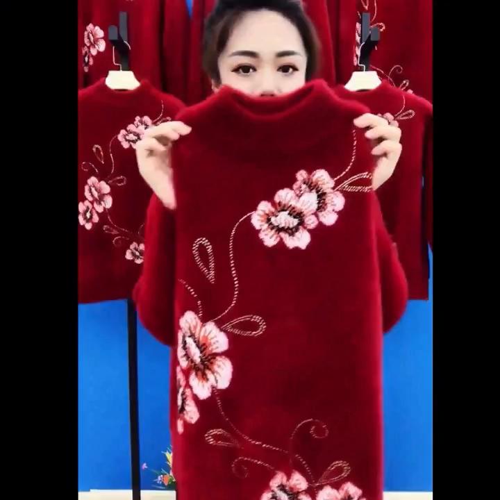 Vinterimitation minktröja för medelålders kvinnor Förtjockad mammatröja
