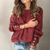 Dammode enfärgad tröja med rund hals varm långärmad tröja