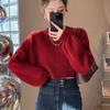 Långärmad oregelbunden stickad tröja dam höst 2023 lös o-ringad solid unik kort vår- och hösttröja dam