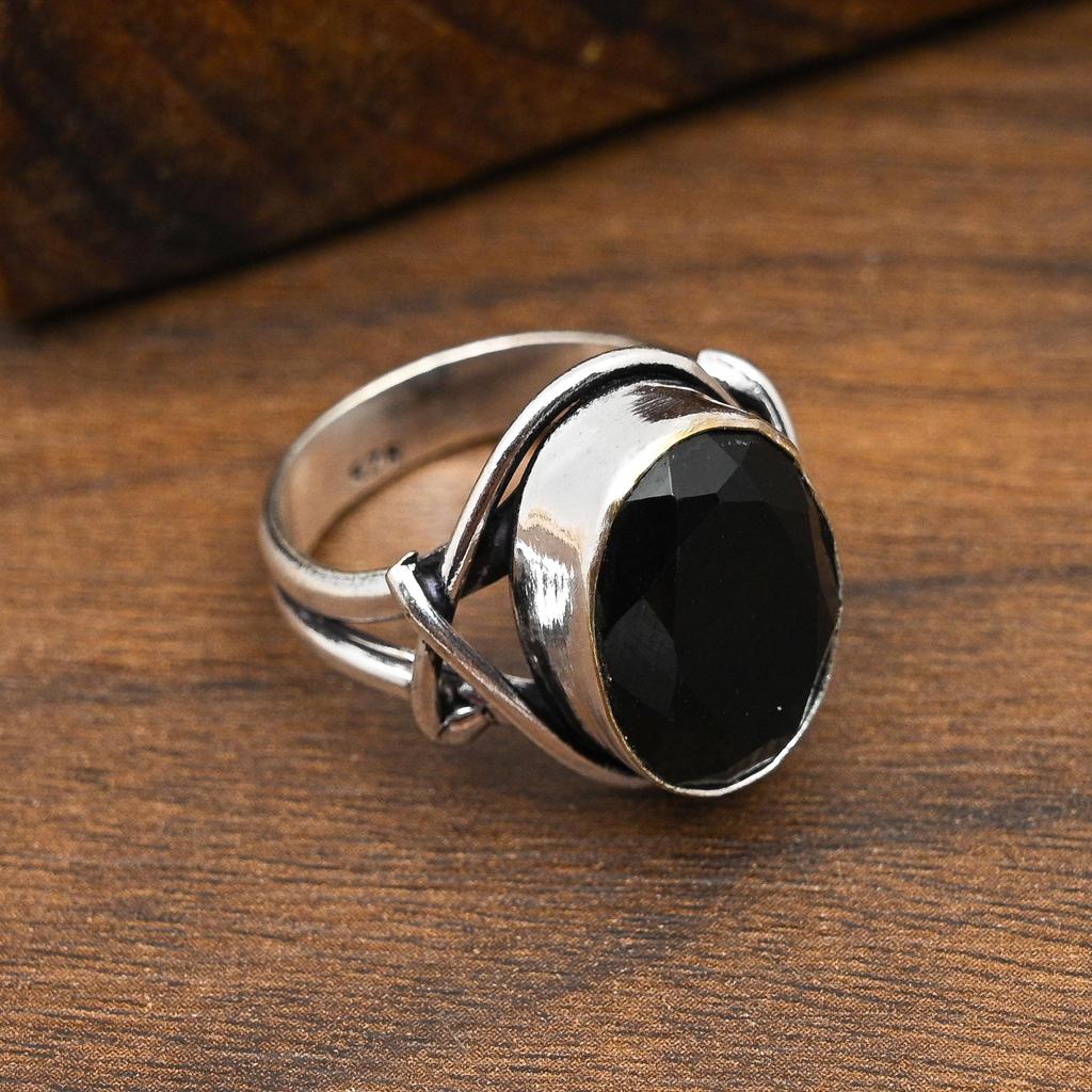 Svart Spinel Ädelsten Handgjorda 925 Sterling Silversmycken för bröllopspresent