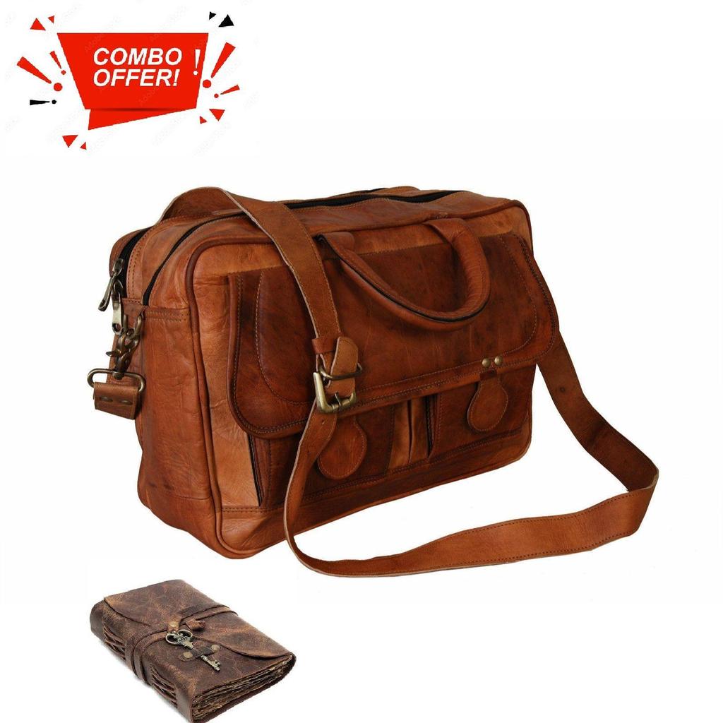 Men's Real Goat Leather {Vintage} Brown Messenger Bag Shoulder Laptop Briefcase. With Combo Leather Diary