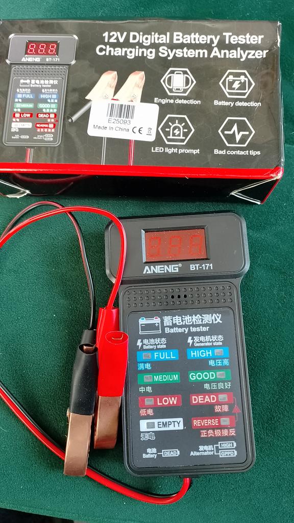 Detektering av bilbatteri: När den är ansluten kommer LED-displayen att visa spänningen som testas och LED-lampan tänds för att indikera batteristatus.