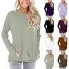 Vår Höst Rundhalsad T-shirt dam Casual Långärmad Lös T-shirt Dammode Ficka Solid Office Lady Tee Tops 30575