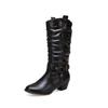 Q/Lågklackade stövlar för damer, höst och vinter nya tjockklackade mellanlängda stövlar, överdimensionerade vardagsstövlar