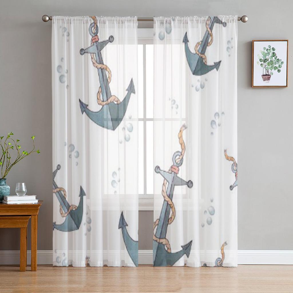 Nautiskt Ankare Skir Gardin För Vardagsrum Modern Voile Tüll Fönstergardiner För Sovrum Kök Draperier