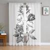 Röd Ros Gren Blomma Skira Gardiner För Vardagsrumsfönster Transparent Voile Tygtyllgardin Sovrum Draperier Heminredning