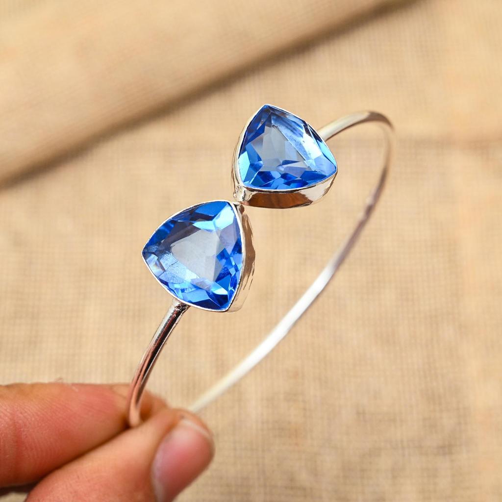 Tansanit Ädelsten Handgjord 925 Sterlingsilver Smycken Manschett/ Armband För Kvinnor