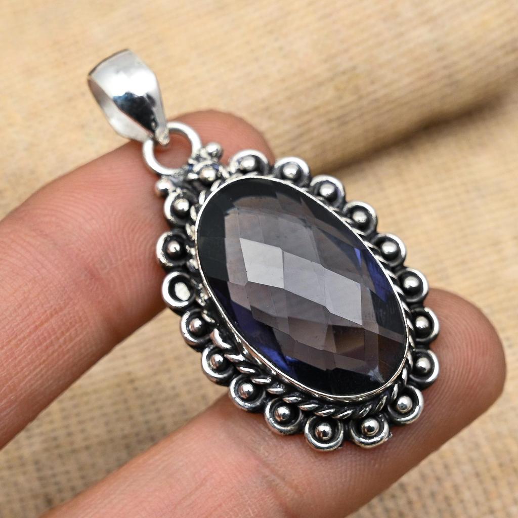 Spectacular Iolite Gemstone Handmade 925 Solid Sterling Silver Jewelry Superb Pendant For Women
