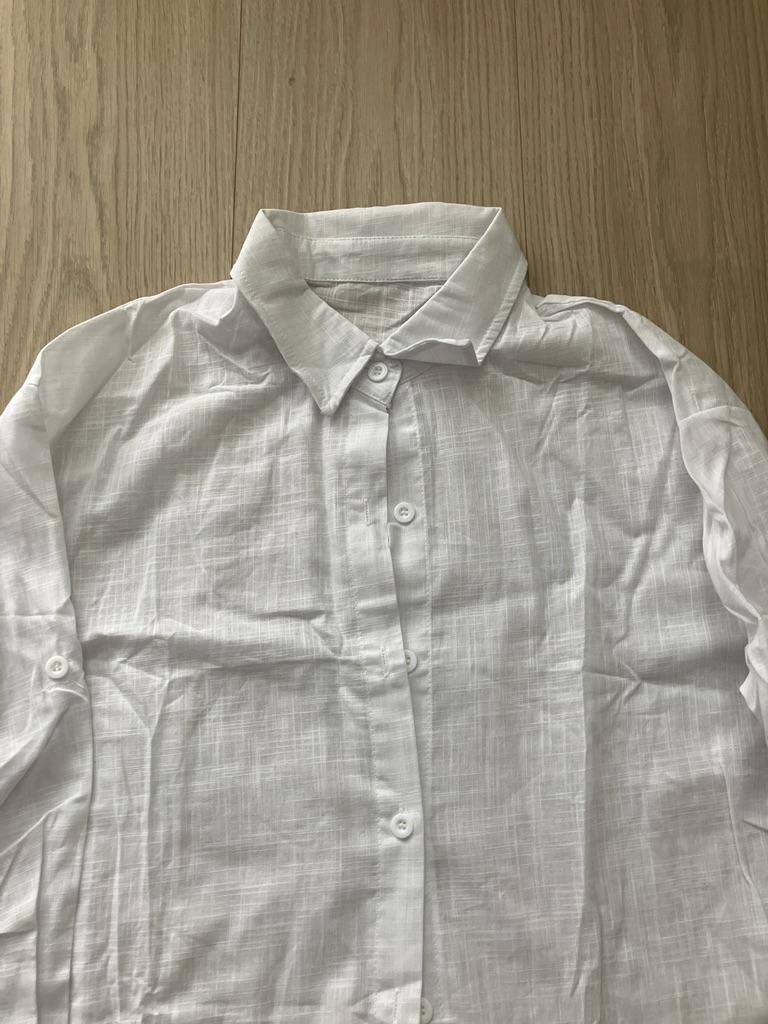 Kvinnors vår- och sommarskjorta i bomull och linne i enfärgad lös trekvartsärm