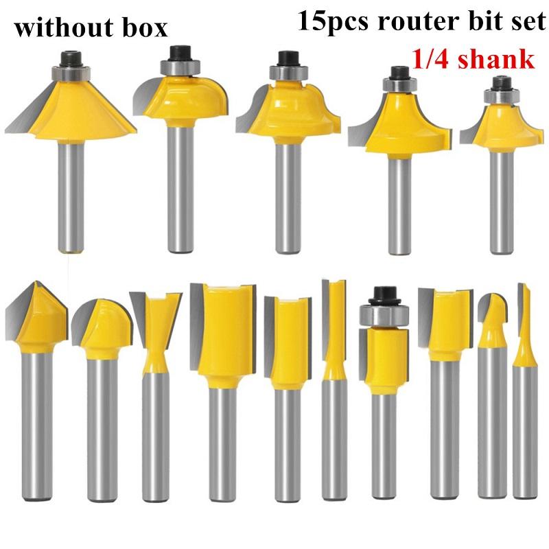 15pcs 8mm 6.35mm shank Router Bit Set Trimming Straight Milling Cutter for Wood Bits Tungsten Carbide Cutting Woodworking