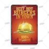 Burgerskylt Bäst i stan 100% Nötkött BBQ Vintage Dekor Varmkorvar Kökdekorationer Väggplakett Retro Dekor Vintage Matskylt