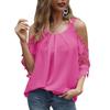 Enfärgad lös T-shirt antar O-ringad och off shoulder-design, den är avslappnad och kan matchas med jeans, kjolar, shorts, konstläderbyxor, etc.