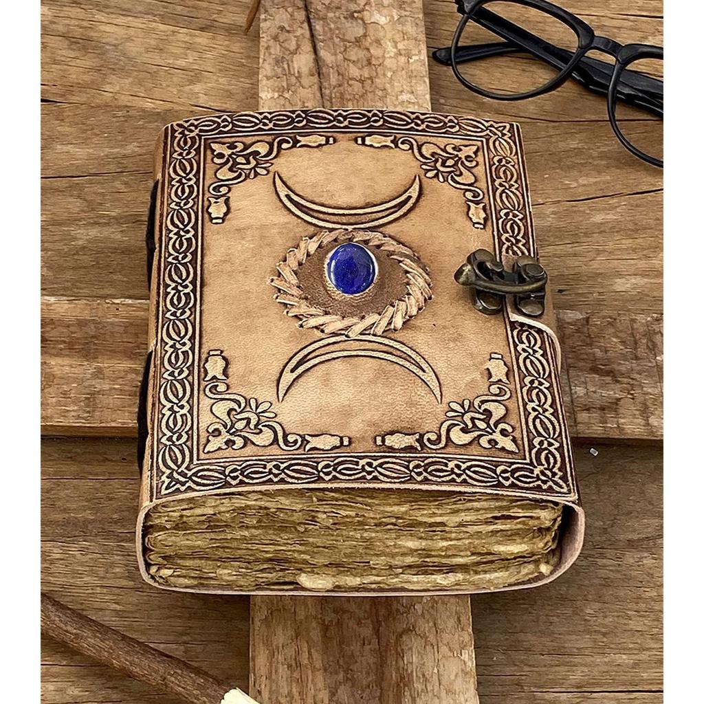 Vintage Läder Keltisk Trefaldig Måne Grimoire Svart Skuggornas Bok Besvärjningsbok Journal för Män Kvinnor, Wicca Wiccan Pagan Hekseri Skrivbok