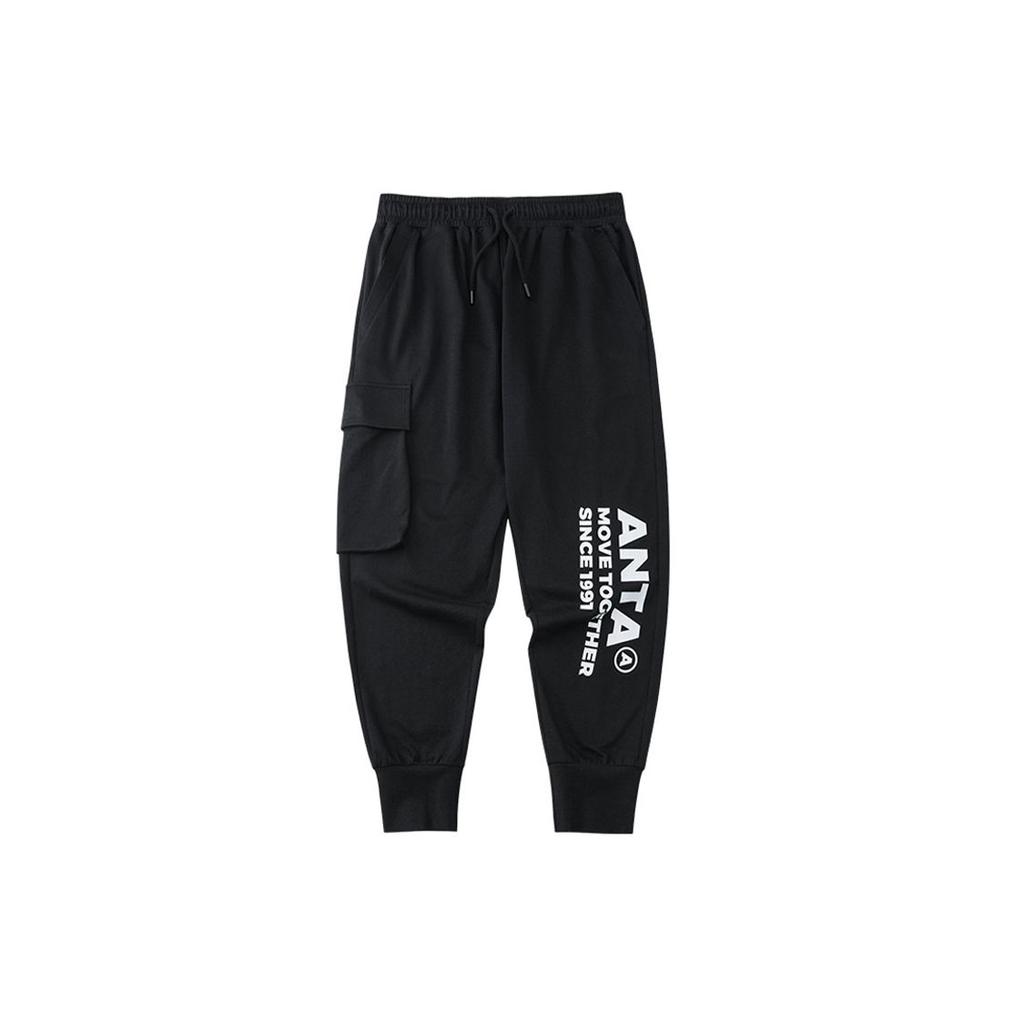 Anta Letter Logo Loose Casual Sweatpants Tapered Sport Pants Couples Style Unisex Bottoms Black 952228510-2