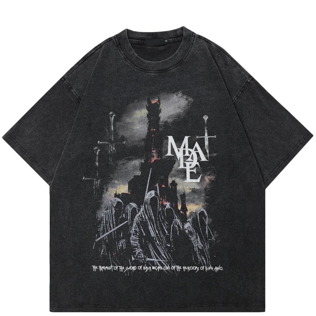 Streetwear The Dark Castle Grafisk Unisex T-shirt Bomull Tvättad Svart T-shirt Unisex Toppar T-shirts Sommar Kortärmad T-shirt