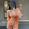 3PCS Casual Sports Suit Ladies Summer Zip Cardigan + Vest + Wide Leg Shorts Three-piece Set Tracksuits Jogging Suits Girls Athletic Clothing