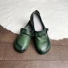 Läderskor Dam vår och höst Enstaka färger Bekväm mjuk botten runt spänne Platt hälspänne Retro mångsidiga skor