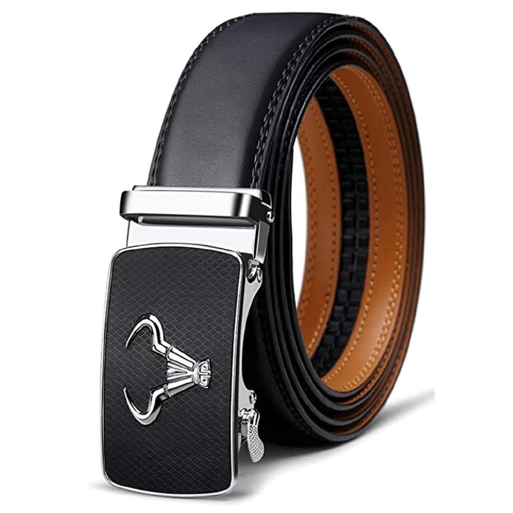Bälte i äkta läder för män med autolåsspänne - Mikrojusterbart bälte som passar överallt | Formellt & Casual | Elegant presentförpackning