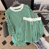 Randig kortärmad dam 2st träningsoverall Set Sommar Casual Lös sportdräkt T-shirt Shorts Set
