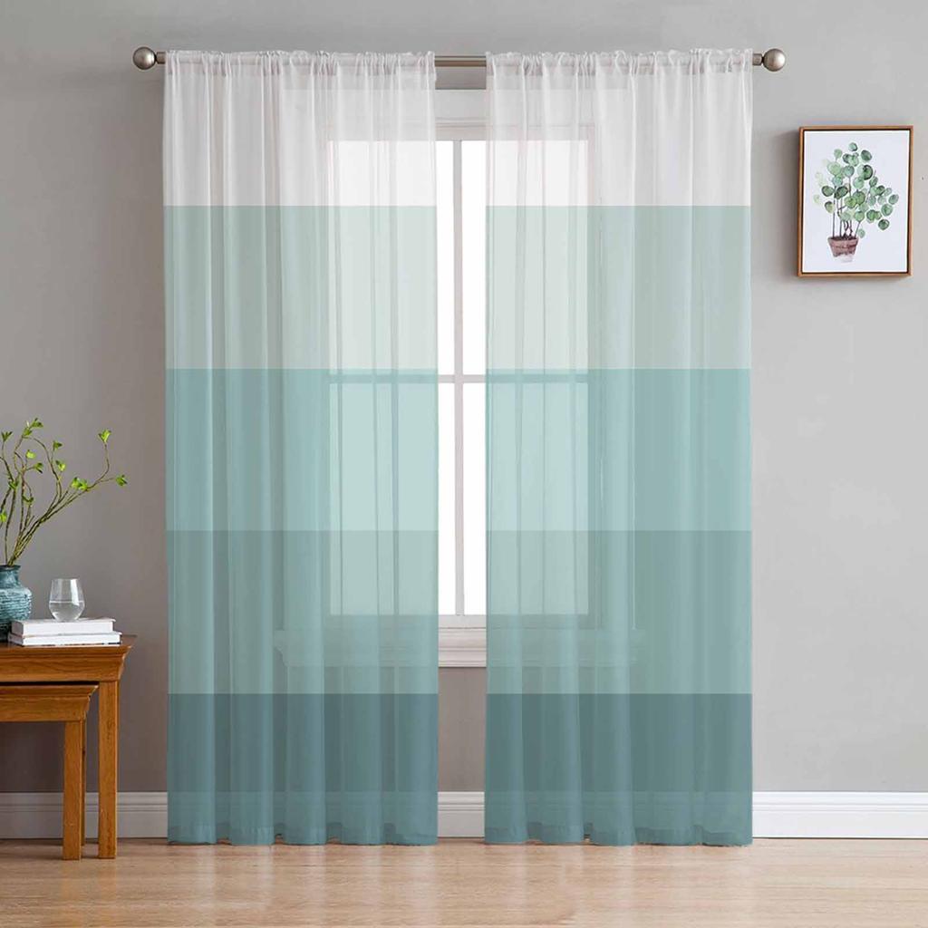 Randiga minimalistiska ljus vattenandgröna fönstertyllgardiner för vardagsrum sovrum hotell lyxdekoration skira gardiner