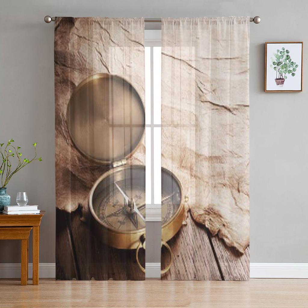Närbild av kompassen på gammalt papper Tyll Skira gardiner för vardagsrum Sovrum Kök Dekoration Voile Organza Gardiner